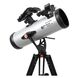 Die Optik N 114/1000: Dieses Teleskop in klassischer Newton Bauweise bietet 114mm Öffnung in einer kompakten Bauweise. Somit ist es ein ideales Fernrohr für Einsteiger, das sehr leicht zu transportieren, in der Handhabung einfach und ohne besondere Vorkenntnisse zu betreiben ist. Mit diesem Teleskop sehen Sie bereits die Ringe vom Saturn oder die Wolkenbänder und die Monde vom Jupiter, die wie ein eigenes kleines Planetensystem aussehen. Aber auch die helleren Nebel und Sternentstehungsgebiete wie der Orionnebel bleiben Ihnen nicht verborgen. Gehen Sie auf Entdeckungsreise!