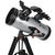 Die Optik N 127/1000 ist ein Spiegelteleskop nach Isaac Newton (1643-1727). Der Spiegel sammelt über 300 mal so viel Licht, wie das menschliche Auge und fokusiert es in einen Brennpunkt, der am vorderen Ende des Tubus liegt. Ein kleiner Sekundärspiegel lenkt das Licht zur Seite aus dem Tubus hinaus. Dort können Sie dann mit einem Okular ganz bequem die eingestellten Himmelsobjekte betrachten.