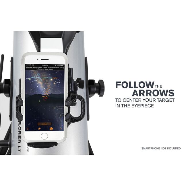 Es muss lediglich die kostenlose StarSense Explorer-App auf dem Smartphone installiert und das Smartphone in die spezielle Halterung des Teleskops eingelegt werden.