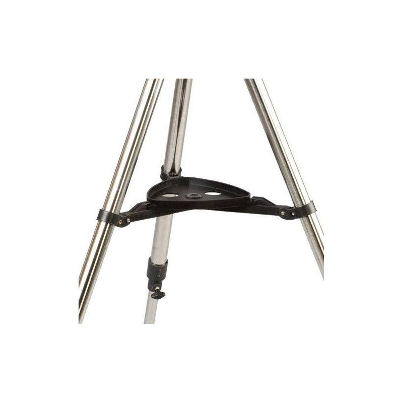 Diese parallaktische Montierung ist ausreichend für Teleskope bis ca. 5kg Gesamtgewicht. Teilkreise in beiden Achsen erlauben die manuelle Feinbewegung, welche über die biegsamen Wellen sehr feinfühlig möglich ist. Im Gegensatz zur etwas kleineren Montierung CG-2 wurden hier beide Achsen gleichstark dimensioniert und mit derselben hochwertigen Feinverstellung ausgerüstet. Das höhenverstellbare und komplett vormontierte Stativ besitzt Stahlrohrbeine mit 1,25" Durchmesser und trägt Montierung und Teleskop stabil und schwingungsarm. Auf der Zubehörablage können Sie wichtiges Zubehör aufbewahren und haben dieses immer in Griffweite. Ein Motor für die automatische Nachführung ist in der Rektaszensionsachse optional nachrüstbar, bei den Astromaster MD Modellen ist dieser sogar bereits im Lieferumfang enthalten.