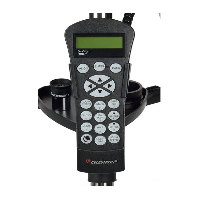 Der Betrieb der präzisen Servomotoren und elektronischen Positionsgeber ist wahlweise mit 8 Mignon-Zellen oder einem Netzteil 12 V/2 A, bzw. einem Power Tank oder mit einem Autobatterie-Kabel möglich (nicht im Lieferumfang enthalten). Geeignete Stromversorgungen finden Sie unter "Empfohlenes Zubehör". Der Internet-upgradefähige NexStar-Handcontroller ermöglicht auf Knopfdruck das Anfahren von bis zu 4000 Objekten.