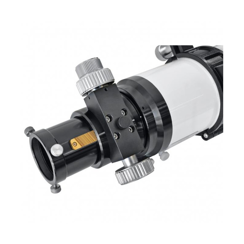 Die dreilinsige Konstruktion mit FCD-1-ED Sonderglas von Hoya, Japan, und zwei Luftspalten ermöglicht eine Korrektur, die deutlich sichtbar über dem Niveau der zweilinsigen ED-Apos liegt, die sonst in dieser Preisklasse erhältlich sind. Ein rechnerischer Polystrehl von über 0,9 spricht hier eine sehr deutliche Sprache gegenüber den mit zwei Linsen möglichen 0,8. Diese überlegene Abbildungsleistung kombiniert mit einer soliden Mechanik ergibt ein Paket das keine Wünsche offen läßt.