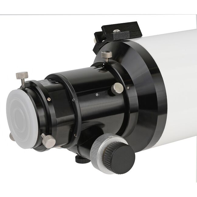 Der hochwertige 2,5"-Hexafok-Okularauszug mit 1:10 Untersetzung ist dieser hochwertigen Optik angemessen. Durch den großen freien Durchmesser tritt auch bei Astrofotografie mit größeren Chips keine Vignettierung durch den Okularauszug auf, wie das bei kleineren Okularauszügen der Fall sein kann.