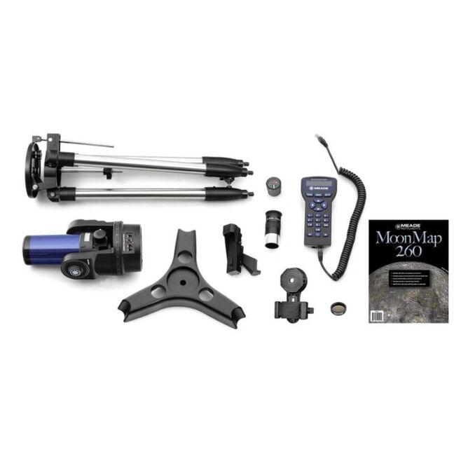 - Als elektronische Steuerung dient die im Lieferumfang enthaltene sehr bewährte Handbox. Die Software kann, ohne heimischen PC oder Laptop, eine große Anzahl von Objekten am Sternenhimmel automatisch anfahren und nachführen, so dass das Objekt der Begierde trotz Erddrehung immer im Blickfeld bleibt.