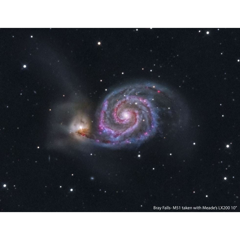 Advanced Coma-free Optics (ACF): Das optische Design ACF von Meade unterdrückt die typischen Abbildungsfehler aller Spiegel-Optiken. Die Sterne sind dank ACF auch am Rand des Bildfeldes punktförmig, zeigen also keine längliche Verzerrungen, die an Kometen erinnern. Das Bildfeld ist flacher als bei klassischen Schmidt-Cassegrain-Teleskopen. Insbesondere in der astrofotografischen Anwendung spielt die ACF-Optik ihre Stärken aus.