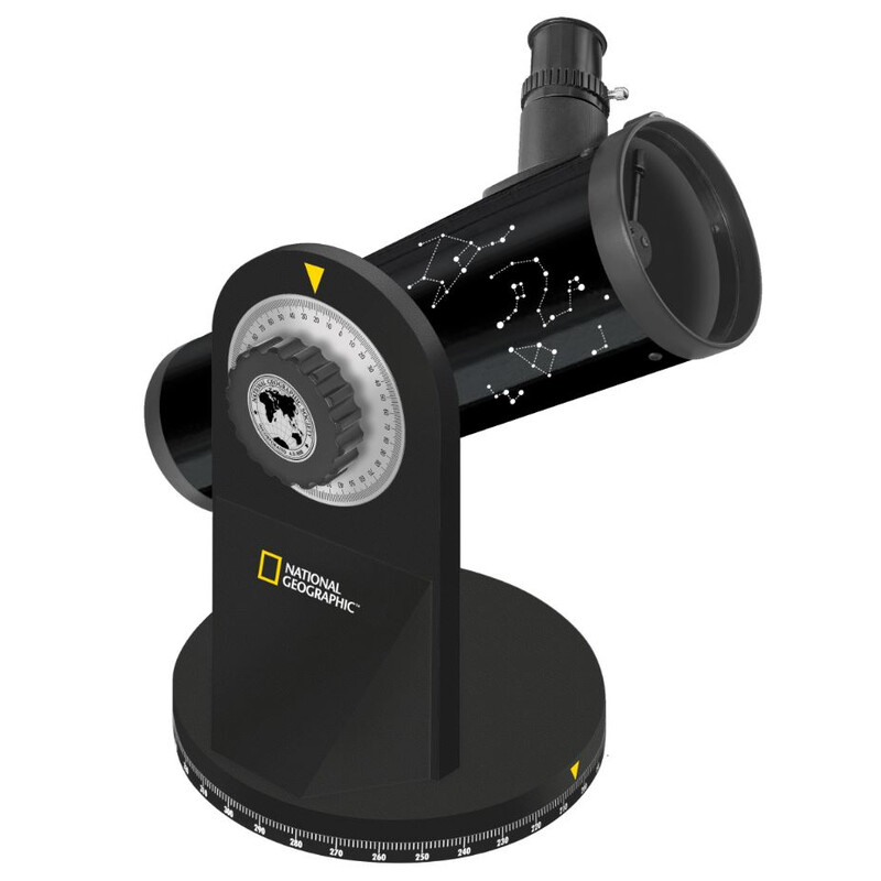 Das Dobson-Teleskop ist fertig montiert. Man kann es einfach auf einen Tisch stellen und sofort mit der Erkundung des Weltraums beginnen. Umfangreiches Zubehör ist bereits enthalten.