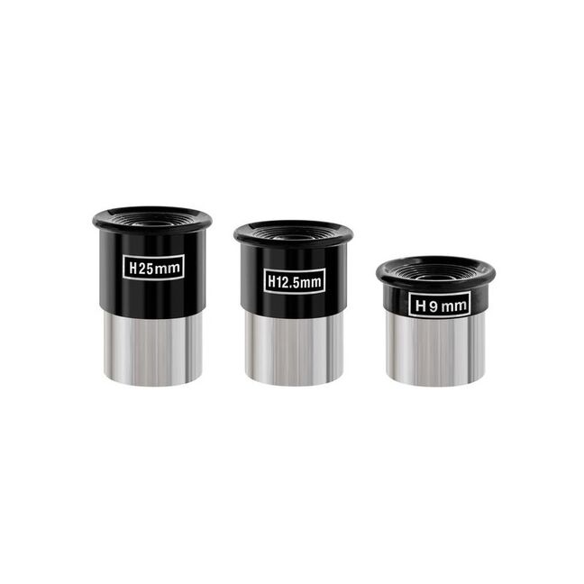 Okulare werden für die Beobachtung benötigt. Sie erzielen je nach Brennweite eine bestimmte Vergrößerung. Die Angabe 1,25" bezieht sich auf den Durchmesser der Steckhülse (1,25" = 31,8 Millimeter).