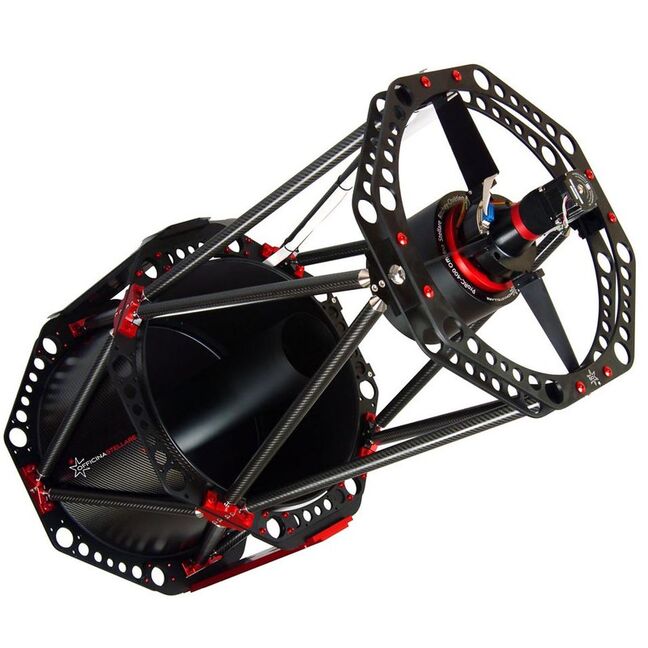 Volle Aufmerksamkeit für konstruktive Details: computerberechnete Blenden zum Schutz der Brennebene vor Streulicht, Neigungsverstellung der Brennebene, großer Fokusauszug, hochpräzise sphärische Gelenke in der Traversenstruktur, doppelter paralleler Spaltring für die Sekundärspiegel/Spinnenhalterung, radiale mikrometrische Verstellung der Spinne, manuelle oder motorisierte Nullpunktverschiebung des Sekundärspiegels, spezielle Decklackierung aller für den optischen Pfad empfindlichen Teile und viele weitere Details sind für den professionellen Einsatz optimiert.