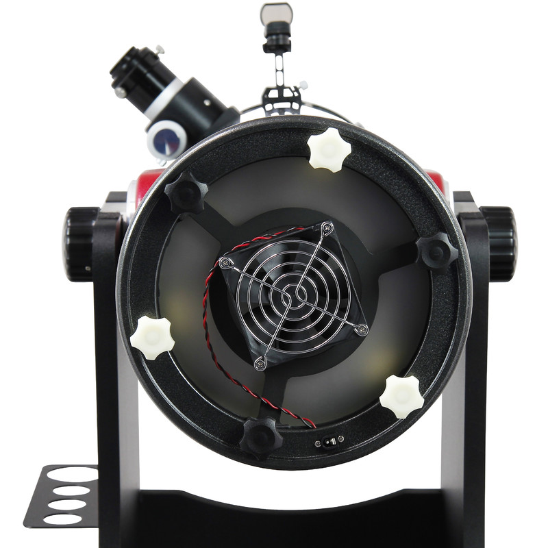 Nur ein leises unauffälliges Brummen, aber eine große Wirkung: Der integrierte 12V-Lüfter sorgt für eine bis zu 50% schnellere Auskühlung des Hauptspiegels. Damit erreicht Ihr Teleskop schneller die optimale Abbildungsqualität. Sie müssen nicht mehr länger warten.