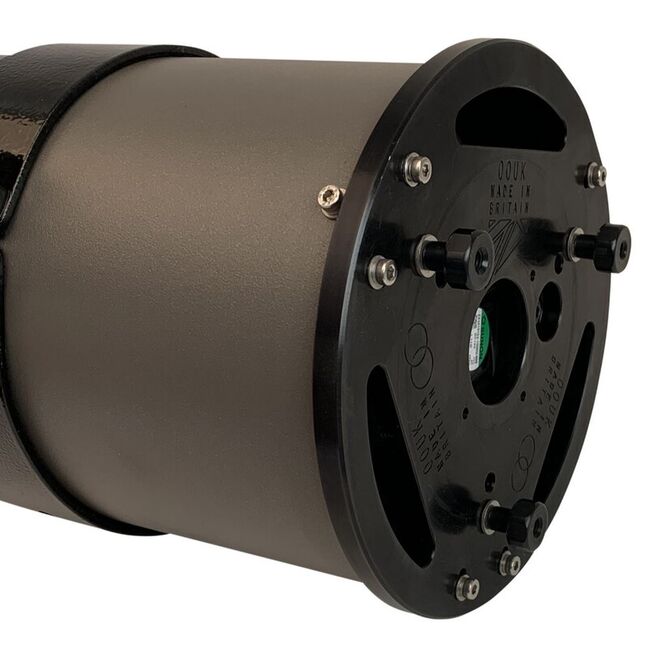 Der verbaute Eris 2" Okularauszug ist ein hochwertiger R&P Fokussierer mit Feinuntersetzung und Reduzieradapter auf 1,25" von Orion Optics UK. Der Okularauszug ist vollständig schwarz eloxiert und um 360° rotierbar für fotografische Anwendungen. Durch das selbstzentrierende "SmoothLock" Ringsystem wird das Zubehör schonend, aber fest geklemmt. Die Feinuntersetzung läuft butterweich und macht absolut präzises Fokussieren möglich. Der 2" Kompressionsring (Steckverbindung) ist durch Drehen zu verriegeln.