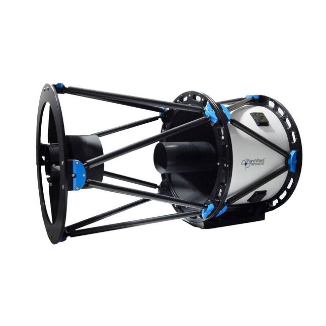 Das PlaneWave RC24 ist ein korrigierter 24" (610 mm) Ritchey-Chrétien (RC) Astrograph mit f/10.6. Das Instrumentengewicht beträgt 109 kg und ist standardmäßig mit einem Anschlussring an der Rückseite ausgestattet, um Fokussierer ihrer Wahl zu akzeptieren. Der Anschluss an die Montierung erfolgt über eine 8"-Prismenschiene (Schwalbenschwanz).