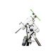 Diese langjährig bewährte Montierung von Skywatcher wurde speziell dafür entwickelt, schwere Teleskoptuben bis 18Kg stabil und vibrationsfrei tragen zu können. Das ist die optimale Voraussetzung für erfolgreiche Astrofotografie, bei der es auf einen besonders präzisen Lauf der Montierung ankommt. Sie erscheint in weißem Design und verfügt bereits über eine eingebaute GoTo Steuerung. Kaum eine andere Montierung bietet ein besseres Preis-/Leistungsverhältnis als die EQ-6, das macht sie so beliebt unter den Hobbyastronomen. Die leistungsfähigen Schrittmotoren in der Rektaszensions- und Deklinationsachse fahren selbst in hoher GoTo Geschwindigkeit die Objekte sehr leise an, so dass die Nachtruhe der Nachbarn in keinster Weise gestört werden kann. Mittels des beleuchtbaren Polsuchers ist ein schnelles und müheloses Einnorden für die Astrofotografie möglich.