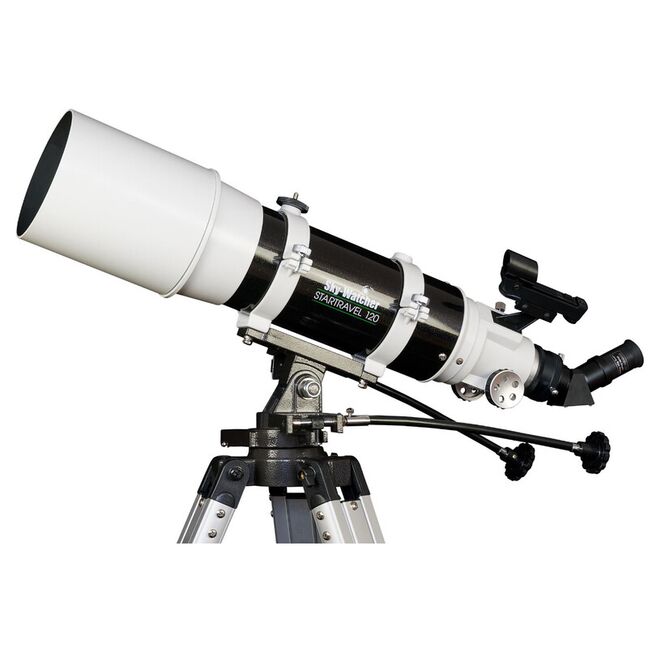Die Optik Skywatcher AC 120/600: Dieser 120/600mm Refraktor ist ein ideales Rich-Field-Teleskop. Mit 600mm Brennweite bietet er die Möglichkeit von sehr schönen Großfeldbeobachtungen. Das Öffnungsverhältnis von f/5 macht ihn außerdem sehr lichtstark für fotografische Ambitionen.