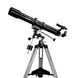 Diese parallaktische Montierung offenbart bereits die Möglichkeit, Optiken exakt auf den Polarstern auszurichten. Es kann für jeden Beobachtungsort die richtige Polhöhe bzw. geografische Breite eingestellt werden. Mit Feinbewegungen in der Rektaszensions- und Deklinationsachse lassen sich Objekte feinfühlig einstellen und verfolgen, ein Gegengewicht sorgt hierbei für die genaue Austarierung der Optik. Kleinere Teleskope sitzen auf dieser Montierung bereits stabil und schwingungsarm. Das Aluminium Dreibeinstativ ist ausziehbar und in der Höhe verstellbar, eine Ablagefläche bietet Platz für Okulare und anderes Zubehör. Die zweitkleinste der EQ-Montierungen ist extrem leicht, kompakt und passt in fast jede Reisetasche. Sie ist leicht von jedem Einsteiger aufzubauen und kann ebenso einfach von Kindern benutzt werden.