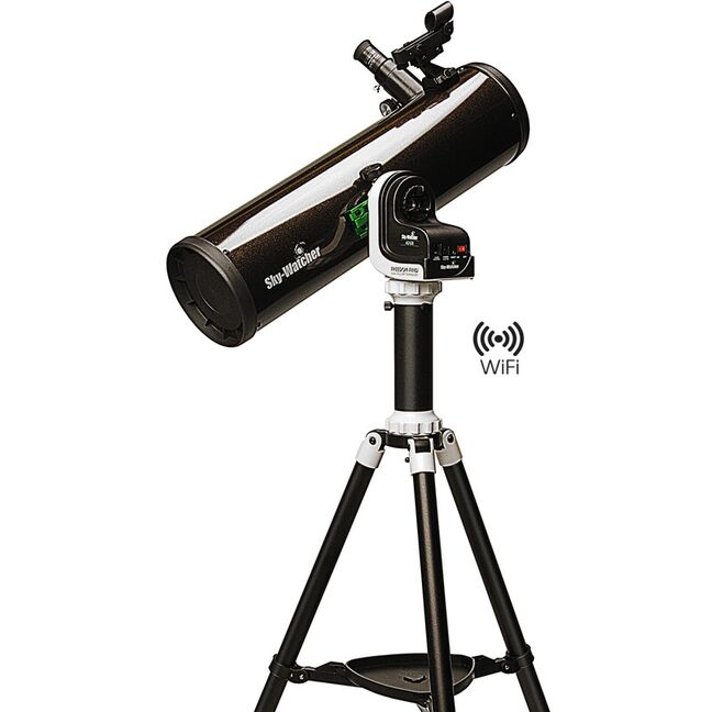 Trotz ihrer geringen Größe verfügt die Montierung über eine Computersteuerung (GoTo) und führt das Teleskop oder die Kamera dem ausgewählten Himmelsobjekt nach. Dies gelingt über das integrierte WLAN (WiFi). Die Montierung erzeugt ein WLAN-Signal, über das Sie sich mit Ihrem Smartphone oder Tablet verbinden können. Mit der SynScan App von Skywatcher für Android oder iOS können Sie dann das Teleskop steuern.