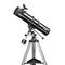 Diese parallaktische Montierung offenbart bereits die Möglichkeit, Optiken exakt auf den Polarstern auszurichten. Es kann für jeden Beobachtungsort die richtige Polhöhe bzw. geografische Breite eingestellt werden. Mit Feinbewegungen in der Rektaszensions- und Deklinationsachse lassen sich Objekte feinfühlig einstellen und verfolgen, ein Gegengewicht sorgt hierbei für die genaue Austarierung der Optik. Kleinere Teleskope sitzen auf dieser Montierung bereits stabil und schwingungsarm. Das Aluminium Dreibeinstativ ist ausziehbar und in der Höhe verstellbar, eine Ablagefläche bietet Platz für Okulare und anderes Zubehör. Die zweitkleinste der EQ-Montierungen ist extrem leicht, kompakt und passt in fast jede Reisetasche. Sie ist leicht von jedem Einsteiger aufzubauen und kann ebenso einfach von Kindern benutzt werden.