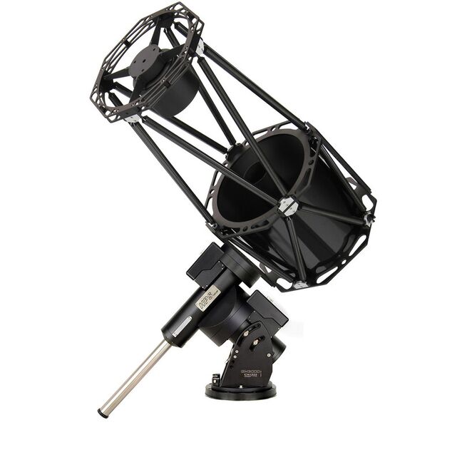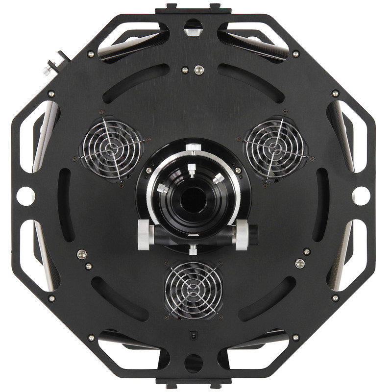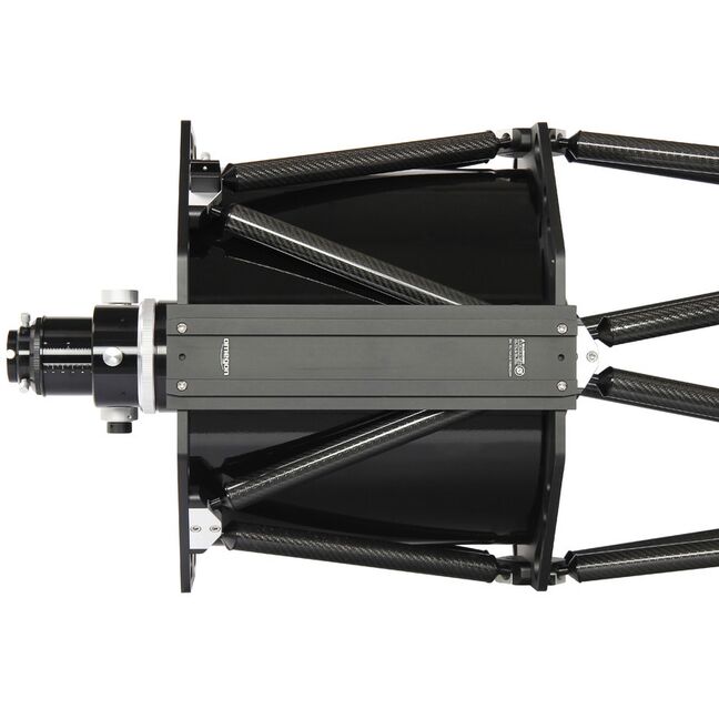 Die meisten Profiteleskope besitzen ein Gitterrohr-Design. Die damit verbundenen Vorteile nutzt auch dieses Instrument. Die Carbonrohre sind versteift, leicht und besonders temperaturstabil. Ein weiterer Grund, warum der Fokus stabil bleibt. Der Luftaustausch gelingt im offenen Gitterdesign besser und verhindert entstehendes Mikroklima im System.