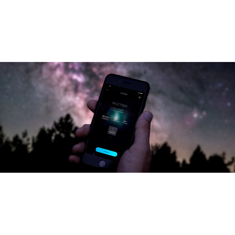 Auto-Initialisierung: Vespera nutzt das GPS Ihres Handys, die Sternmustererkennung und die Astrometrie, um sich selbst zu kalibrieren. Richten Sie Ihr Gerät ein und machen Sie es in weniger als 5 Minuten automatisch bereit.