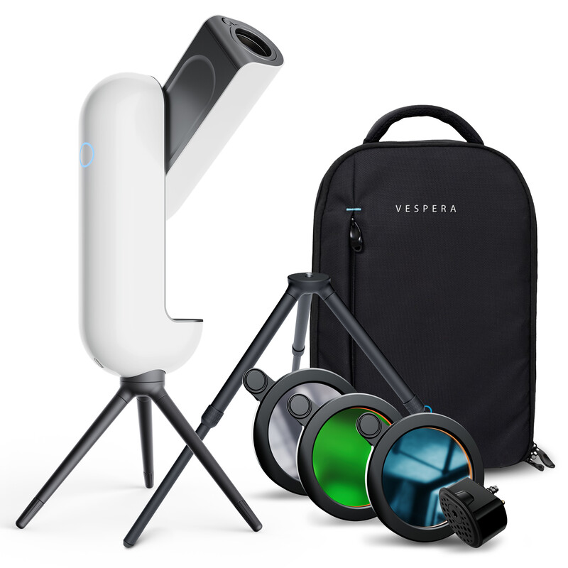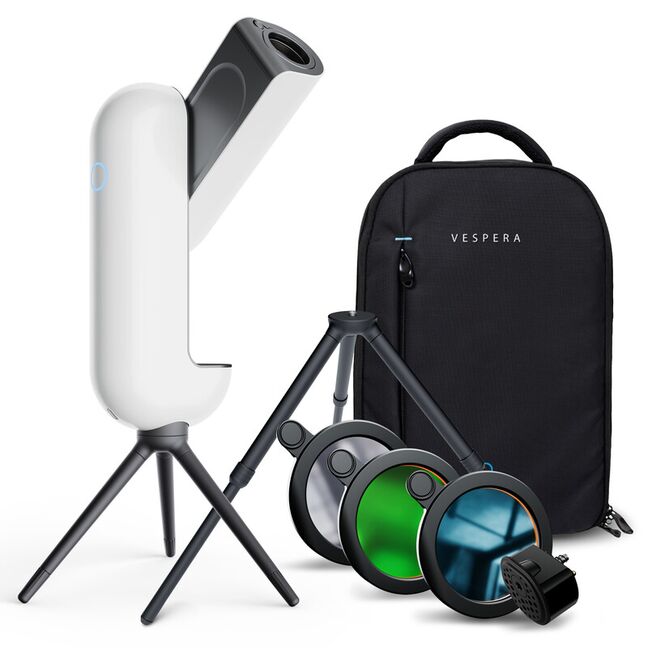 Vespera ist Ihre neue Beobachtungsstation, die perfekte Kombination aus Teleskop und Kamera. Intelligent und vollautomatisch sind die Wunder des Universums jetzt für alle leicht zugänglich. Erforschen und beobachten Sie den Nachthimmel, machen Sie Ihre eigenen Fotos von Himmelsobjekten, lernen Sie etwas über den Kosmos und teilen Sie Ihre Entdeckungen an einem Ort.