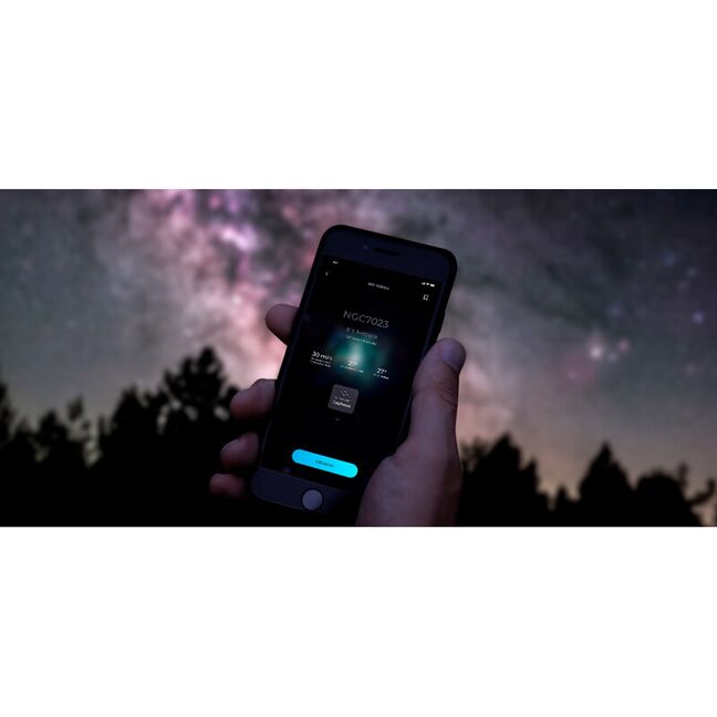 Auto-Initialisierung: Vespera nutzt das GPS Ihres Handys, die Sternmustererkennung und die Astrometrie, um sich selbst zu kalibrieren. Richten Sie Ihr Gerät ein und machen Sie es in weniger als 5 Minuten automatisch bereit.